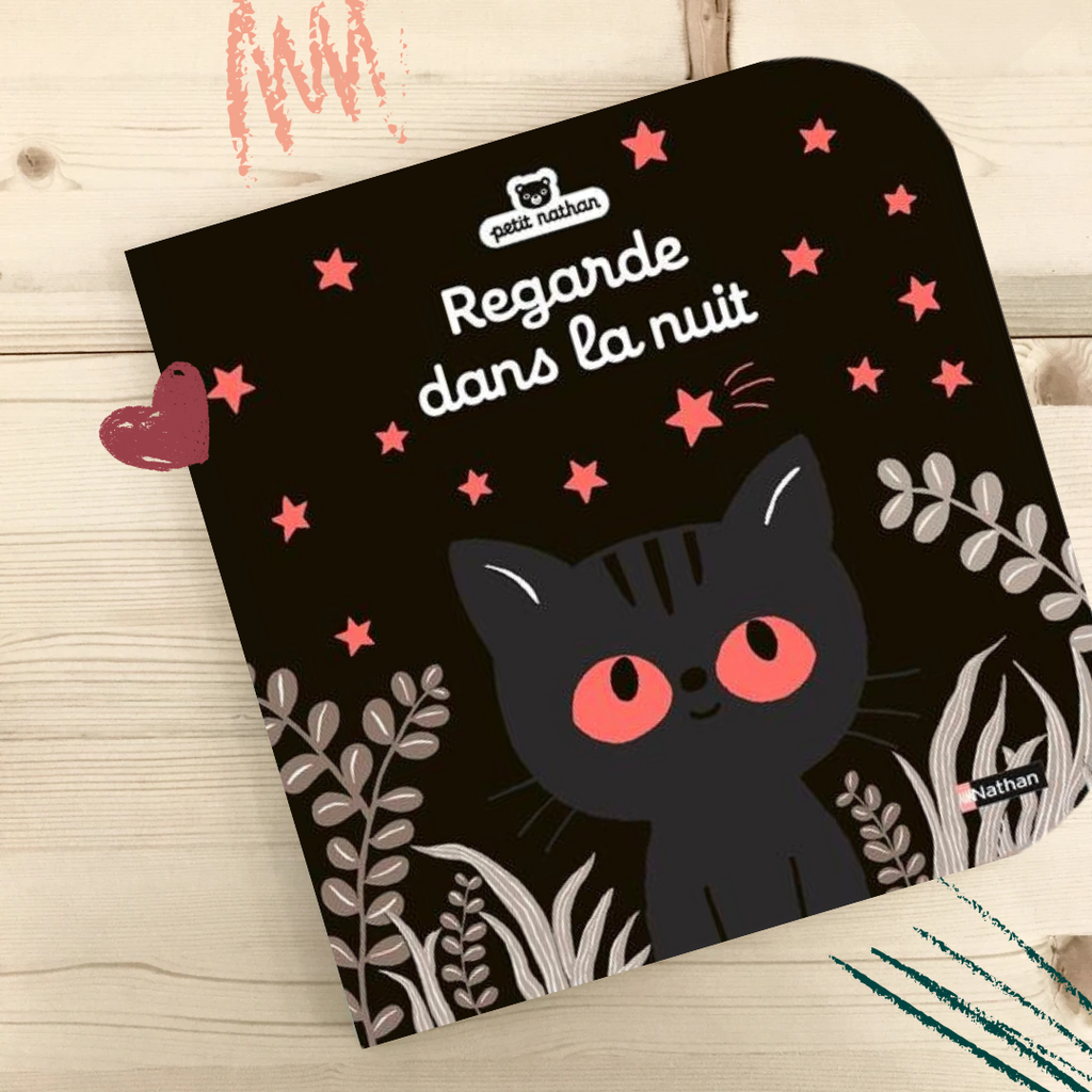 Sur chaque double page, un chat accompagne l'enfant dans la découverte d'éléments qui illuminent la nuit : la lune, des yeux, des fenêtres, etc. Avec des matières à toucher et des motifs brillants.