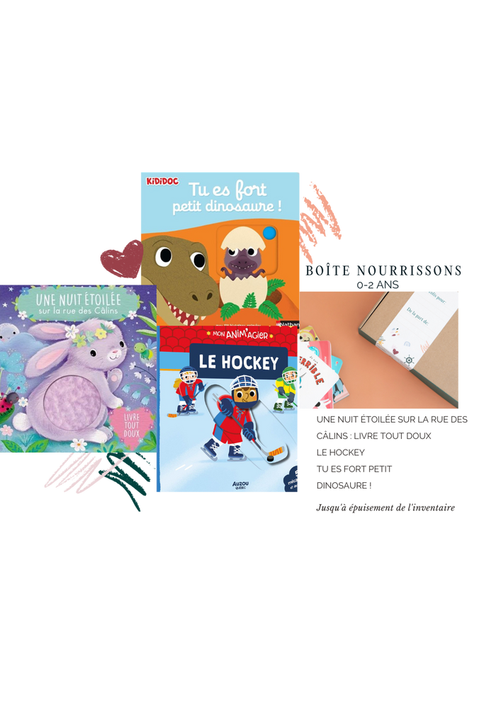 Une boîte contient 3 livres, spécifiquement choisis pour les petits de 2 ans et moins.