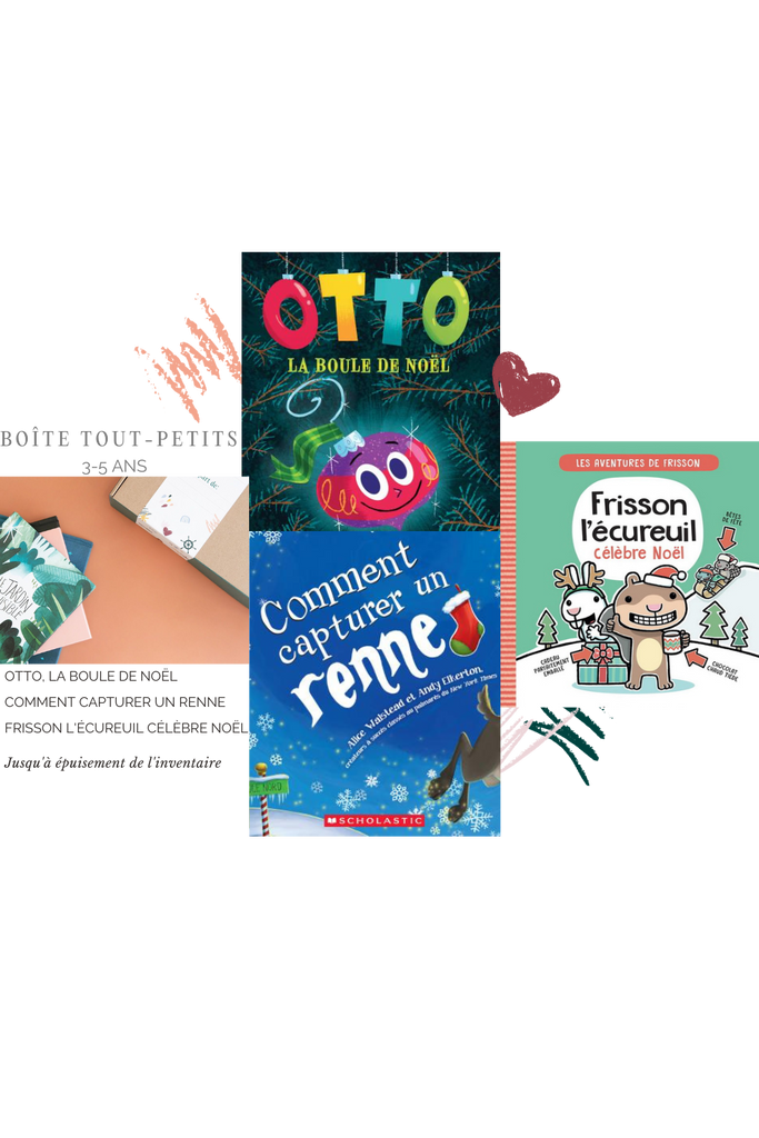 Une boîte contient 3 livres destinés aux enfants de 3 à 5 ans (tsé, le petit lecteur aguerri qui veut tout voir, entendre et comprendre).