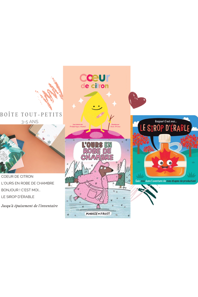 Chaque sélection contient 3 livres destinés aux enfants de 3 à 5 ans (tsé, le petit lecteur aguerri qui veut tout voir, entendre et comprendre).