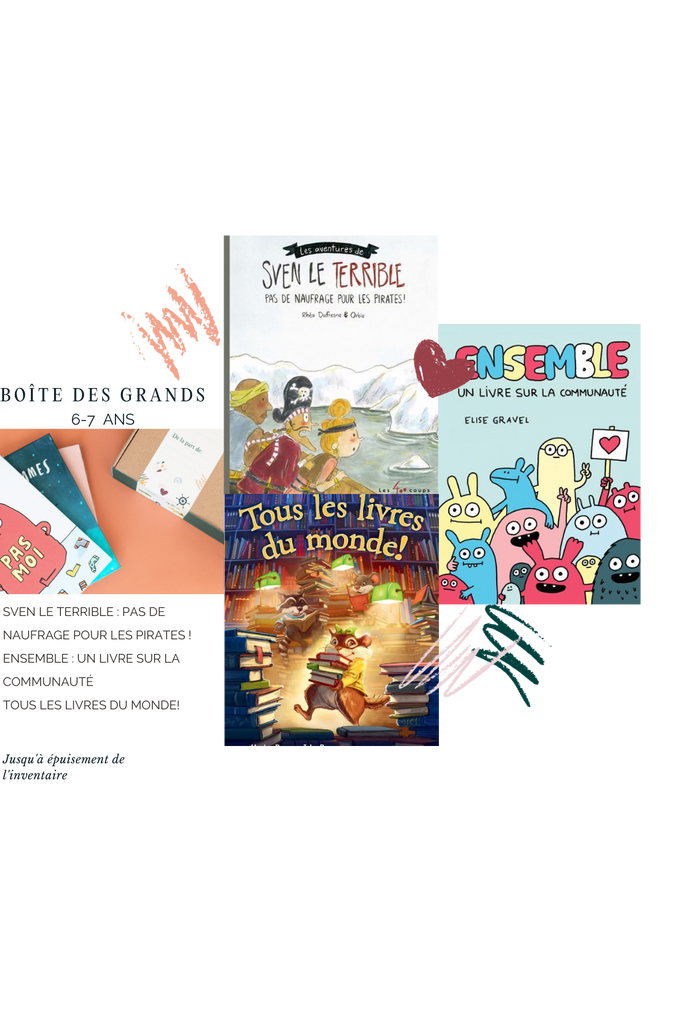 N’oublie pas de regarder les trésors qui se retrouvent de La boutique. Il y a des livres, des jeux et des activités pour compléter ta boîte de livres. 🧩